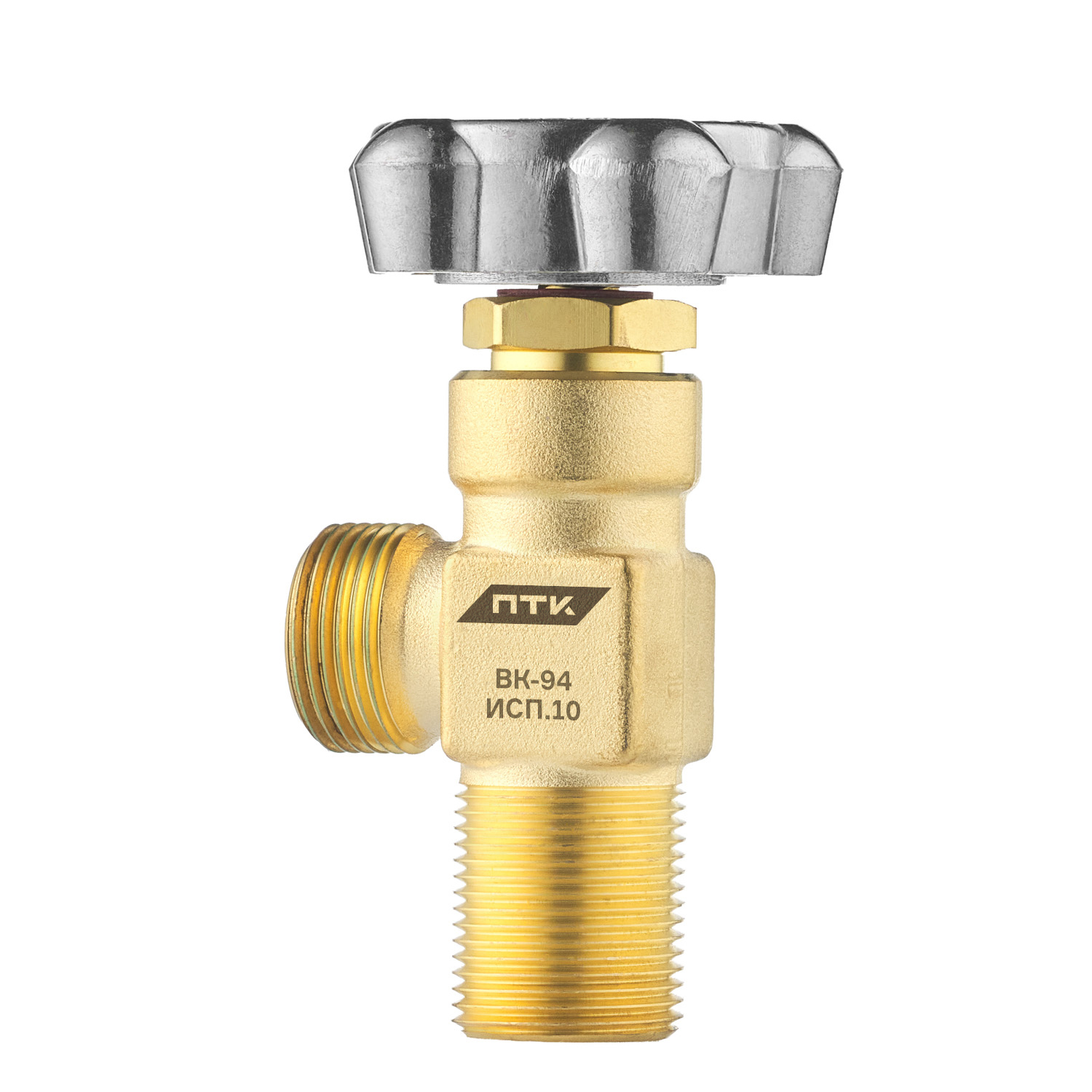 Вентиль баллонный ПТК ВК-94 (исполнение 10) используется как запорное устройство для предотвращения утечки газа и регулировки подачи кислорода. Также может применяться для баллонов со сжатым воздухом, азотом и другими неагрессивными газами.Рекомендуется для кислородных баллонов объёмом 5–40 литров с рабочим давлением до 20 МПа (200 кгс/см²).Корпус вентиля выполнен из латуни, маховик - из алюминия. Присоединительная резьба для установки на баллон - цилиндрическая G3/4 по ГОСТ 9909. Резьба шпинделя обработана кислородостойкой смазкой ВНИИНП-283, обеспечивая высокую герметичность.Конструкция вентиля предусматривает применение гибкой мембраны, что гарантирует абсолютную герметичность при любом положении клапана и длительный срок службы изделия.Комплектация:Вентиль кислородный ВК-94 исп. 10 в сборе – 1 шт.Руководство по эксплуатации – 1 шт.